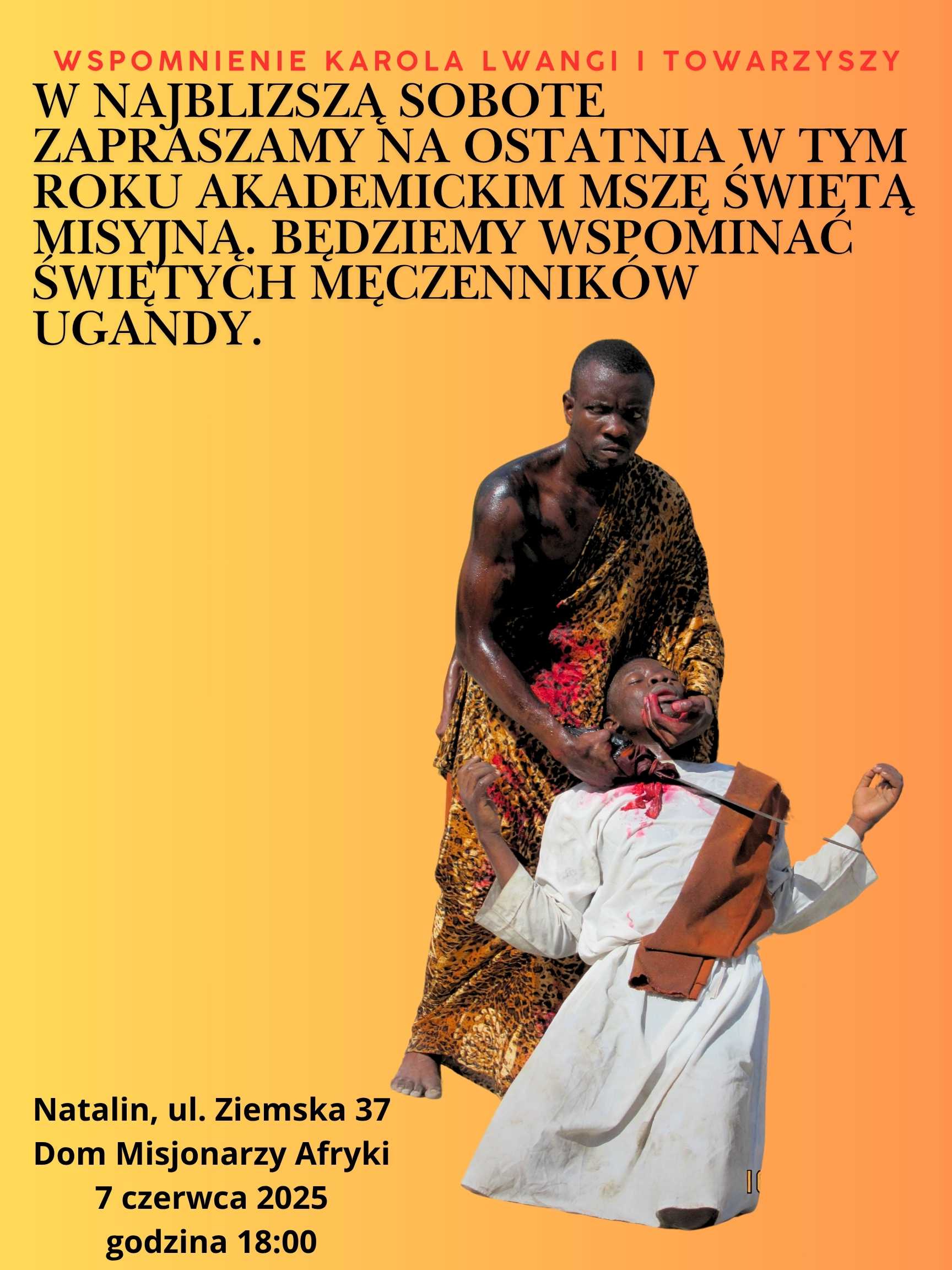 Zapraszamy na ostatnią w tym roku akademickim Mszę Świętą Misyjną. Odbędzie się ona już w najbliższą sobotę o godzinie 18:00 w naszej kaplicy pw. Męczenników Ugandy.